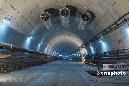 五月二十日上午,隨著“揚子二號”盾構(gòu)機的巨型刀盤轟鳴呼嘯著沖破最后一環(huán)冷凍層,中國鐵建十四局集團承建的國家“八六三”計劃科技示范工程、代表當今中國水下隧道建設(shè)最高水準之一的南京長江隧道左線順利貫通。南京長江隧道位于南京長江大橋和長江三橋之間,總長達到五千八百五十三米,設(shè)計為雙向六車道,行車時速八十公里,其中左右線盾構(gòu)隧道總長超過六千米,工程總投資近四十億元人民幣。它是迄今為止中國長江流域上工程技術(shù)難度最大、地質(zhì)條件最復(fù)雜、技術(shù)性難題和挑戰(zhàn)最多的世界級越江隧道工程。南京長江隧道施工采用了兩臺目前世界上最先進的泥水平衡盾構(gòu)機掘進,刀盤直徑為14.93米,相當于5層樓高,超過了目前世界上已經(jīng)建成的最大直徑隧道——荷蘭的格林哈特隧道。中新社發(fā) 李佩山 攝