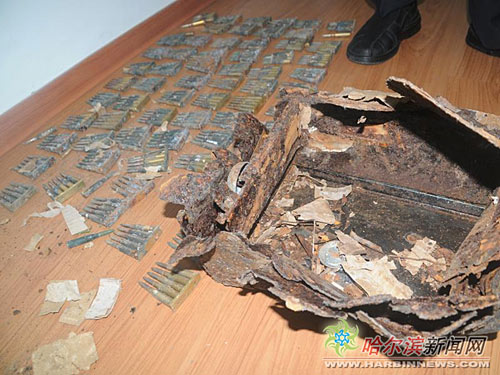 21日下午3時許,平房區(qū)(哈爾濱)平房鎮(zhèn)工農(nóng)村一位農(nóng)民在大地里發(fā)現(xiàn)了一個裝滿子彈的鐵箱子,他隨即報警。接到報警后,平房公安分局治安大隊趕到現(xiàn)場,經(jīng)查點,箱子里面共有300多發(fā)銹跡斑斑的子彈。由于包裝子彈的紙上寫有日文,警方推測,子彈應(yīng)該是日偽時期留下的機槍子彈。據(jù)悉,這些子彈將被警方帶回分局等待統(tǒng)一銷毀。(陳南)