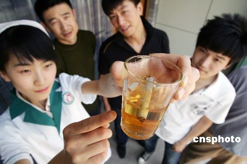 5月31日,在山東省濰坊市區(qū)后門街社區(qū)內(nèi),社區(qū)衛(wèi)生室的醫(yī)護人員正在通過水分解香煙所含的尼古丁物質(zhì)向居民們講解吸煙的危害。當日是“世界無煙日”,這所社區(qū)開展了戒煙宣傳活動,旨在提高社區(qū)居民對吸煙危害健康的認識,以幫助居民們作出健康的選擇,從而營造一個健康、清潔、無煙的社會環(huán)境。中新社發(fā) 張馳 攝
