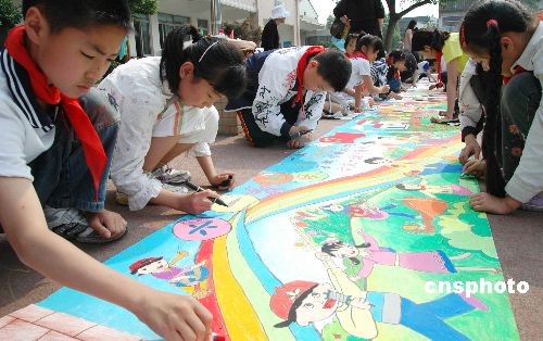5月31日,經(jīng)過(guò)選拔來(lái)自蘇州市平江區(qū)東中市、敬文等12所實(shí)驗(yàn)學(xué)校的數(shù)十名少年兒童代表在蘇州敬文實(shí)驗(yàn)小學(xué)舉行了以愛國(guó)主義為主題的“繪百米長(zhǎng)卷”現(xiàn)場(chǎng)繪畫活動(dòng),喜迎“六一”兒童節(jié)到來(lái)。中新社發(fā) 蘇民 攝