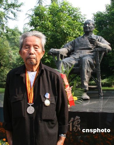 6月6日,在緬甸生活長達(dá)60多年的中國遠(yuǎn)征軍老兵、廣安籍88歲老人劉召回在四川廣安鄧小平紀(jì)念園鄧小平銅像前獻(xiàn)花。當(dāng)日,剛從緬甸回國探親的劉召回,為親眼看一看祖國的繁榮富強(qiáng),感謝鄧小平的好政策,專門從四川省廣安市岳池縣裕民鎮(zhèn)陶家溝村老家由親人陪同來到鄧小平紀(jì)念園緬懷鄧小平同志的豐功偉績。據(jù)了解,1942年3月,在抗日戰(zhàn)爭最為關(guān)鍵的時(shí)刻,10萬中國遠(yuǎn)征軍從畹町走出國門,抗日救國。戰(zhàn)后有上千遠(yuǎn)征軍留在了戰(zhàn)場緬甸,開始了長達(dá)數(shù)十年的異鄉(xiāng)生活。中新社發(fā) 杜修戰(zhàn) 攝