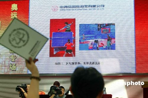 6月30日,北京奧運會專用物資拍賣會迎來“謝幕秀”,北京奧組委處置奧運物資的最后一拍當(dāng)日舉行,乒乓球決賽用祥云比賽臺、主席臺座椅、茶幾等130多件奧運物資屆時公開拍賣。 此次拍賣的奧運特殊物品主要包括主席臺茶幾及座椅、國際貴賓廳專用沙發(fā)、鳥巢私人餐臺、乒乓球決賽用祥云比賽臺等,其中包括30余件奧運會前專為國家領(lǐng)導(dǎo)人及各國元首設(shè)計的絕版沙發(fā)及座椅,每個版本僅此一件。中新社發(fā) 富田 攝