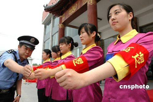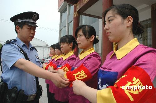 2009年7月9日,山東首支全運(yùn)會酒店女子巡邏隊(duì)在淄博周村北郊鎮(zhèn)成立。當(dāng)日是第十一屆全國運(yùn)動(dòng)會倒計(jì)時(shí)第99天,來自山東淄博周村區(qū)的10名酒店女子在北郊派出所民警的帶領(lǐng)下開始“上崗”巡邏。據(jù)悉,全運(yùn)會期間,她們除擔(dān)負(fù)酒店周邊治安巡邏任務(wù)外,還負(fù)責(zé)救援受困游客和景區(qū)防火滅火等工作。中新社發(fā) 梁寶海 攝