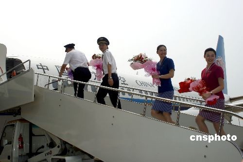 7月15日,一架中國南方航空公司嶄新的波音737—300客機(jī)滿載125名旅客,從武漢天河機(jī)場騰空而起,目的地臺北桃園機(jī)場。此次開通臺灣直航包機(jī)是中國南方航空公司開啟漢臺直航常態(tài)化的首航。此次航班的旅客中61%是武漢市及周邊地區(qū)的大陸居民赴臺觀光的旅游團(tuán)隊,另外的39%是散客,主要以公商務(wù)和探親旅客居多,也有部分是返臺的臺胞。中新社發(fā) 湖北分社 攝