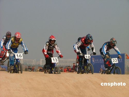 十月二十二日上午,第六屆全國(guó)城運(yùn)會(huì)BMX(小輪車)男子越野賽在洛陽(yáng)賽區(qū)舉行,運(yùn)動(dòng)員們經(jīng)過(guò)幾個(gè)回合的預(yù)賽較量后進(jìn)入決賽,香港運(yùn)動(dòng)員王史提芬率先奪得男子冠軍,煙臺(tái)市的孫越、大同市的任超分列二、三名。中新社發(fā) 史寶銀 攝