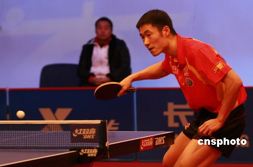 1月11日,在長沙舉行的第三屆“世界乒乓球總冠軍賽”男單半決賽中,中國選手王勵勤以4比3艱難逆轉,闖入決賽,將與衛(wèi)冕冠軍王皓爭奪本屆總冠軍賽的男單冠軍。中新社發(fā) 鄧霞 攝