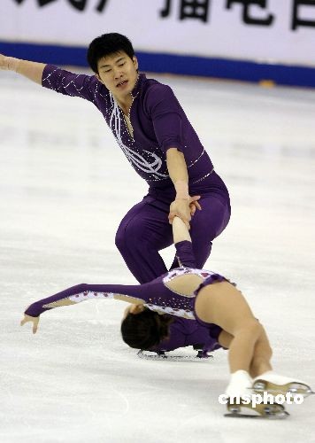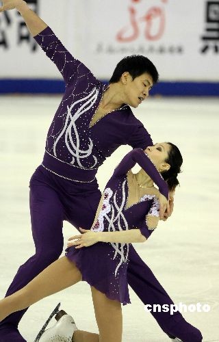 在第24屆世界大學(xué)生冬季運(yùn)動(dòng)會(huì)花樣滑冰雙人滑比賽中,張丹、張昊以195.32的總成績奪得冠軍,取得三連冠。中新社發(fā) 王韶驊 攝