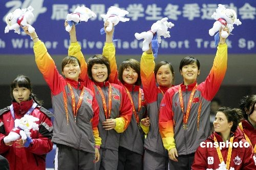 2月23日,第24屆大冬會(huì)短道速滑比賽全部結(jié)束,在女子3000米接力比賽的爭(zhēng)奪中,中國(guó)隊(duì)?wèi){借著強(qiáng)大的實(shí)力,以4分07秒119順利奪冠,此前已經(jīng)奪取500米和1000米金牌的劉秋宏,順利成為三冠王。中新社發(fā) 富田 攝