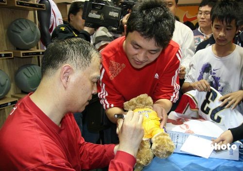 3月22日,中南六省首家NBA品牌店在長沙開業(yè),它將為NBA迷們帶來各類原裝的NBA產(chǎn)品。當天在店內(nèi)購買商品的顧客得到籃球顧問張衛(wèi)平的親筆簽名和籃球技術指導。中新社發(fā) 鄧霞 攝