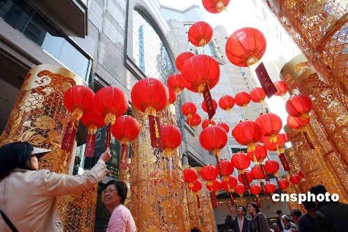 二月四日,農(nóng)歷新年立春,香港時(shí)代廣場(chǎng)設(shè)置元宵街,大紅燈籠高高掛,游客在充滿節(jié)日氣氛的場(chǎng)內(nèi)猜燈謎,迎接元宵佳節(jié)。中新社發(fā) 洪少葵 攝