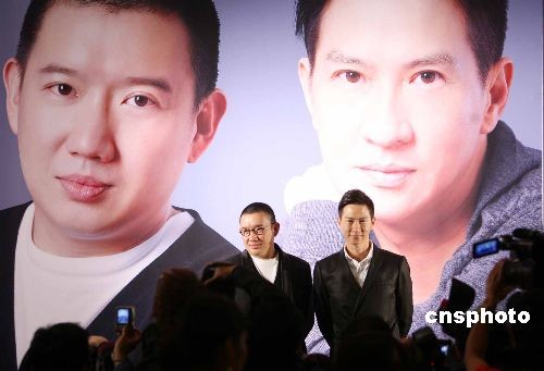 三月十二日,香港英皇娛樂(lè)集團(tuán)在日航酒店舉行記者會(huì),宣布影星張家輝(右)、杜汶澤加盟英皇電影。中新社發(fā) 洪少葵 攝