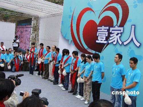 2009年5月10日,在“5·12”汶川大地震震中映秀鎮(zhèn),李連杰攜吳彥祖、林心如、鐘麗緹、柯以敏、鐘漢良、沈星、張杰等眾多明星義工,開(kāi)展中國(guó)紅十字會(huì)壹基金主辦的“壹家人,壹起走”大型戶(hù)外援建災(zāi)區(qū)公益活動(dòng)。來(lái)自各地的300多名媒體記者、志愿者和明星們一同走完了2公里的災(zāi)區(qū)路。在半小時(shí)的路程中,完成了李連杰成立緊急救援聯(lián)盟等許多心愿,眾明星們的表現(xiàn)令人感動(dòng)。 壹基金是由國(guó)際巨星李連杰發(fā)起的立足于中國(guó)的國(guó)際性公益組織,分別在中國(guó)大陸及香港地區(qū)、美國(guó)和新加坡設(shè)立了辦事機(jī)構(gòu)。在中國(guó)大陸地區(qū),壹基金與中國(guó)紅十字總會(huì)合作,成立了“計(jì)劃”,致力于傳播公益文化,搭建公益平臺(tái),以推動(dòng)全國(guó)公益事業(yè)的發(fā)展。中新社發(fā) 善平 攝