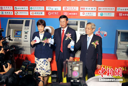 中新網(wǎng)臺(tái)北6月30日電(記者 黃少華)6月30日,中國(guó)銀聯(lián)、臺(tái)灣財(cái)金公司、臺(tái)灣銀行公會(huì)舉行記者會(huì),宣布銀聯(lián)卡在臺(tái)ATM提領(lǐng)新臺(tái)幣、預(yù)借現(xiàn)金及余額查詢(xún)服務(wù)正式開(kāi)通。