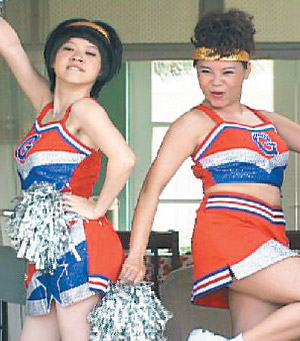林韋君看著鏡中的自己,忍不住用“檳榔西施”口吻問大家說:“偶這樣漂亮嗎?”無獨有偶,阿寶曾寶儀在戲劇《倪亞達》中也犧牲形象和僅雯穿拉拉隊服,為“立委”選舉拉票。