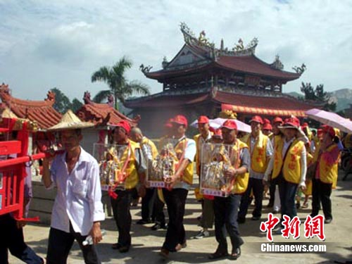 據(jù)考證,赤嶺鄉(xiāng)雨霽頂三官大帝廟為臺灣三官大帝的始祖廟,此次臺灣尋根謁祖團(tuán)是今年第二次趕赴大陸尋根謁祖。臺胞藍(lán)先生表示,海峽兩岸人同根、神同緣,今后將進(jìn)一步加強宗教交流,增進(jìn)兩岸民間交往,促進(jìn)溝通和理解。