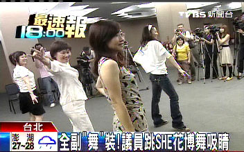當(dāng)天下午,臺(tái)北市女議員脫下厚重套裝,換上輕便服,綁起馬尾,在臺(tái)北市議會(huì)勤練舞步。她們平日問(wèn)政很犀利,跳起舞來(lái)也很認(rèn)真。