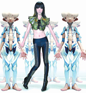 曾為LV設(shè)計暢銷包款的村上隆,這次與時尚雜志跨界合作,蔡依林拍攝封面時悠游于村上隆的“立體球”、“迷彩風(fēng)”與“未來機(jī)器人”作品,宛如現(xiàn)代版走進(jìn)奇幻世界的艾麗斯,視覺效果非常出色。