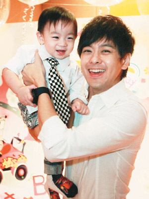 中新網(wǎng)9月17日電 據(jù)臺(tái)灣《聯(lián)合報(bào)》報(bào)道,臺(tái)灣藝人林志穎寶貝兒子Kimi16日慶周歲,林志穎為他高調(diào)慶生,不但親自布置場(chǎng)地當(dāng)起主持人,并請(qǐng)來(lái)30多位包括名模王麗雅夫妻檔、鐘漢良等親朋好友見證兒子“抓周”儀式!靶⌒≈尽币埠軤(zhēng)氣,第一次抓了小型筆記本電腦后,馬上又握住方向盤與麥克風(fēng),儼然是林志穎接班人。