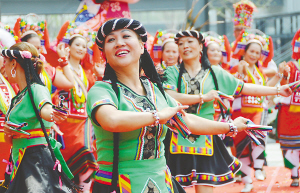 昨天,在南京人氣最旺的新街口,回蕩著《阿里山的姑娘》、《外婆的澎湖灣》等耳熟能詳?shù)呐_(tái)灣樂曲。