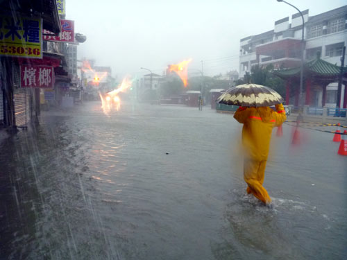 臺(tái)灣“氣象局”指出,“凡那比”中心點(diǎn)離開臺(tái)灣本島后,高雄縣市和屏東地區(qū)降雨以每小時(shí)超過(guò)100毫米速度增加,“氣象局”19日晚7時(shí)將高雄山區(qū)與屏東山區(qū)總降雨量再上修至1200毫米及1400毫米。