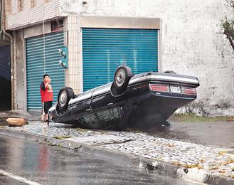 中新網(wǎng)9月20日電 據(jù)臺(tái)灣《聯(lián)合報(bào)》報(bào)道,臺(tái)風(fēng)“凡那比”(大陸稱“凡亞比”)強(qiáng)勁,花蓮刮起17級(jí)強(qiáng)風(fēng),一整排十多輛轎車車窗被吹裂“開(kāi)花”,轎車四腳朝天,摩托車騎士閃躲滿天飛舞的招牌鐵片,有民眾以“血滴子”來(lái)形容它的恐怖。