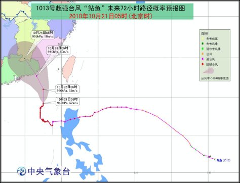 中新網(wǎng)10月21日電 據(jù)“中央社”報(bào)道,臺(tái)灣“氣象局”表示,超強(qiáng)臺(tái)風(fēng)“梅姬”(大陸稱“鲇魚”)于今日凌晨2時(shí)進(jìn)入東沙島南南東海面,持續(xù)朝北前進(jìn),威脅東沙島、巴士海峽及臺(tái)灣海峽海面,2時(shí)30分正式發(fā)布海上臺(tái)風(fēng)警報(bào)。