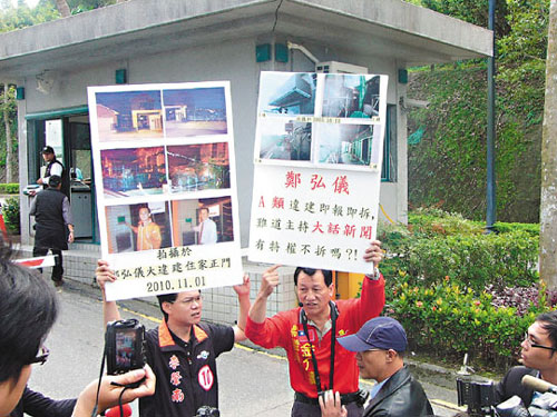 中新網(wǎng)11月3日電 據(jù)臺(tái)灣《聯(lián)合報(bào)》報(bào)道,臺(tái)灣政論節(jié)目親綠營(yíng)的主持人鄭弘儀位于新店市青山鎮(zhèn)社區(qū)的兩層樓別墅,涉嫌未依法申請(qǐng)即加蓋違建,臺(tái)北縣議員金介壽、李肇南2日前往會(huì)勘,社區(qū)保全員以“私人土地”攔阻,一度與議員爆發(fā)推擠沖突。