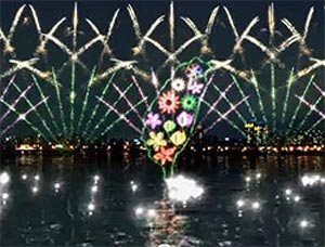 11萬發(fā)煙火中尤以大稻埕煙火將施放的“臺灣百花圖”難度最高,施放過程中,臺灣圖樣于水中慢慢站立的意象表現(xiàn),堪稱是世界獨(dú)一無二的臺灣煙火景觀;此外,也將有2250顆連續(xù)施放、在空中持續(xù)燃燒達(dá)40秒的“紅燈籠煙火”,及代表世界五大洲“心連心”的特殊高空煙火,“彩花瀑布”等精彩絕倫的煙火景象。
