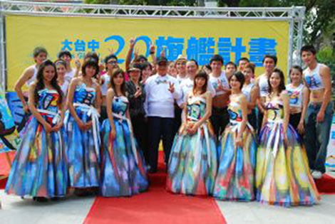 中新網(wǎng)11月10日電 據(jù)臺灣“中廣新聞”報道,國民黨臺中市長參選人胡志強(qiáng),10日在臺中公園湖心亭畔,以展秀方式,發(fā)表二十大旗艦計劃,宣示要為大臺中開創(chuàng)美好未來。特別的是,這些計劃透過設(shè)計師巧手,化成美麗畫作,還拓印成秀服,在激烈的選戰(zhàn)中,多了一點創(chuàng)意與藝文味,相當(dāng)吸睛。