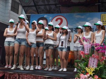 國民黨方面,臺中市長候選人胡志強競選總部成立志工會,來自臺北的美女雙胞胎正妹率先加入。高雄市長參選人黃昭順則出動“正妹”女兒現(xiàn)身力挺,現(xiàn)場多位女性“立委”現(xiàn)身力挺。