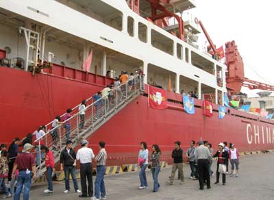 “雪龍?zhí)枴迸潘?萬噸,船身長167公尺,可全天候進(jìn)行測繪與科學(xué)研究,還可搭載兩架直升機(jī)。雪龍?zhí)柾?扛咝鄹燮陂g,4月2日起開放臺(tái)灣民眾參觀,但必須事先登記名單,不能現(xiàn)場報(bào)名。(周先)