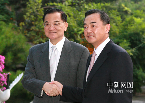 中新網(wǎng)8月5日電 中共中央臺辦主任王毅五日在北京釣魚臺國賓館養(yǎng)源齋會見應(yīng)邀來京觀禮奧運會開幕式的中國國民黨榮譽主席連戰(zhàn)夫婦一行。