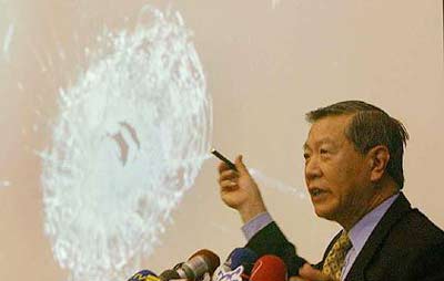 李昌鈺博士在離臺(tái)前的記者會(huì)上公布所采集的槍擊現(xiàn)場(chǎng)相關(guān)鑒識(shí)報(bào)告中指出:證據(jù)顯示陳水扁的傷口含有鉛微粒的成份及車(chē)窗的彈孔確實(shí)是從外向內(nèi)射擊造成的。