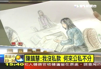 另外對(duì)于吳淑珍批評(píng)公私不分,陳鎮(zhèn)慧說“夫人明明對(duì)錢非常仔細(xì),我作賬也非常清楚,否則夫人怎么可能會(huì)讓我跟隨她20年”,且馬永成和林德訓(xùn)也攻擊她公私不分,機(jī)要費(fèi)賬目不清楚等,陳鎮(zhèn)慧認(rèn)為被誤會(huì)了,對(duì)此感到非常失望。