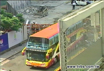 臺(tái)北市信義區(qū)松高路工地一架起重機(jī)從37樓高墜落砸中游覽車尾部,車上坐著25名廣東旅游團(tuán)團(tuán)員,當(dāng)時(shí)他們用完午餐打算前往101大樓參觀,沒有想到意外從天而降,游覽車車體已經(jīng)變形。