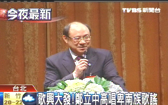 鄭立中晚間也再次談起晚宴提到的“冬季到臺北來看雨”這首歌,可惜他不會唱了。不過當(dāng)晚的氣氛讓他想唱首歌,歌名就叫“我們都是一家人”,唱完之后他還謝謝大家“在精神上付出的損失”。