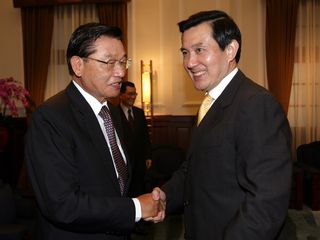 第三次“江陳會(huì)談”將于26日在南京正式登場,馬英九今天接見;鶗(huì)代表團(tuán)成員。