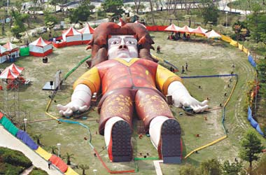 中新網(wǎng)4月2日電 據(jù)臺灣聯(lián)合報報道,臺中市兒童藝術(shù)節(jié)今晚登場,一劇團(tuán)在公園打造長近60米的“格列佛人體藝術(shù)探索館”,市民站在巨大的“格列佛”身旁,頓時變成“小人”,好像進(jìn)入童話故事情境,從格列佛的腳底進(jìn)入,能認(rèn)識人體器官。