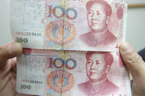 據(jù)“中央社”報(bào)道,臺灣數(shù)家機(jī)場金融機(jī)構(gòu)分別在5日和12日發(fā)現(xiàn)部分臺商使用HD90開頭的偽造百元人民幣紙鈔,各有1張和2張,但紙質(zhì)和防偽線異常,一眼就被行員識破,行員登記旅客個(gè)人資料后將偽鈔沒入。