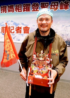 馬祖天后宮為了這次攀登世界最高峰,擲筊后制作一尊六點(diǎn)六吋媽祖金身,讓李小石背負(fù)登山,李小石也修改登山背包,準(zhǔn)備在通過峭壁等危險(xiǎn)地形時(shí),把媽祖金身裝在背包里,確保安全。