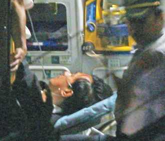 看阿扁臉色很蒼白,高院一度準(zhǔn)備將他送臺大醫(yī)院。法警拿毛毯、枕頭供他休息,救護(hù)員又多次測量他的生理狀況;晚上10時(shí)30分,阿扁臉色已漸回復(fù)正常,血壓、血氧、脈搏一切正常,合議庭決定阿扁不送醫(yī),直接還押看守所,由看守所醫(yī)護(hù)室注意。阿扁即躺在救護(hù)車上、鼻上插著呼吸管回看守所。