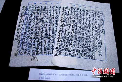 中新網(wǎng)重慶5月11日電 (孟幻)11日,紅巖革命歷史博物館展示了其從美國抄回的蔣介石日記。據(jù)稱,這些日記為首次在大陸曝光,將有利于近代史實的完善和補充。