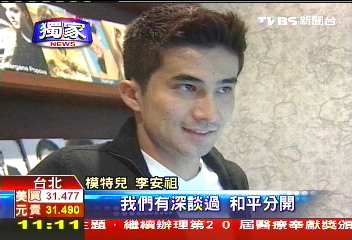 中新網(wǎng)5月11日電 據(jù)臺(tái)灣TVBS電視臺(tái)報(bào)道,最近有一個(gè)模特兒界的新人格外引人注意,因?yàn)樗?jīng)是當(dāng)紅歌手蕭亞軒的前男友,他的名字叫李安祖,長(zhǎng)的高大帥氣是巴西和日本的混血兒,前女友的名氣比他大上許多,但這幾年來臺(tái)灣發(fā)展,雖然曾窮到連續(xù)2個(gè)月只吃面包度日,李安祖在臺(tái)灣日子過的很辛苦,但在巴西卻是家產(chǎn)雄厚,母親擁有40英畝大的農(nóng)場(chǎng),算是巴西農(nóng)場(chǎng)小開。今天接受TVBS獨(dú)家訪問,他也認(rèn)了跟蕭亞軒的往日戀情。