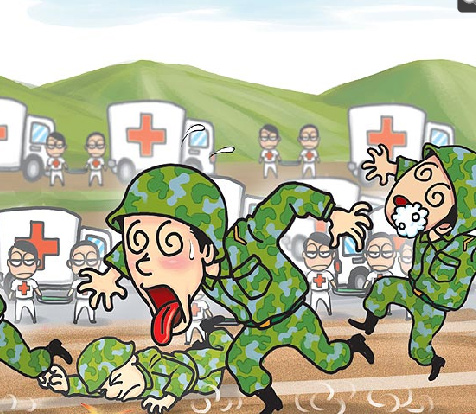 后備司令部表示,這次新兵訓(xùn)練的結(jié)訓(xùn)體能檢測,原本是在7月20日實(shí)施3000米跑步,因天氣炎熱延到前天實(shí)施,但當(dāng)時氣溫仍高達(dá)攝氏36度,再延到下午5時,直到5時多溫度降到32度,才進(jìn)行新兵3000米徒手跑步,醫(yī)官、護(hù)士及救護(hù)車在旁戒護(hù)。跑完步后,有幾名士兵呼吸急促、體溫上升,才由救護(hù)車送往醫(yī)院治療。根據(jù)最新版體測標(biāo)準(zhǔn),19至22歲一般役男,3000米的及格成績是14分鐘。