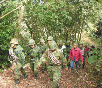 軍方和警義消昨天動(dòng)員700人力兵分六路,搜尋嘉義縣大埔鄉(xiāng)的農(nóng)義農(nóng)場(chǎng)與開(kāi)元農(nóng)場(chǎng)、高雄縣那瑪夏鄉(xiāng)的二溪山、表湖與卓武山、飛機(jī)最后雷達(dá)光點(diǎn)消失位置的老人溪十四號(hào)橋?哲娨渤鰟(dòng)十一架次直升機(jī)貼地搜尋,可惜一無(wú)所獲。