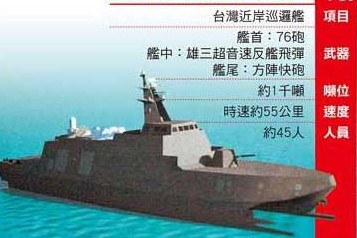 對(duì)于研發(fā)新型近岸巡邏艦,海軍司令部表示,海軍希望建立“不對(duì)稱(chēng)戰(zhàn)力”,因此一直朝小而精、小而巧、小而強(qiáng)的方式,籌建現(xiàn)代化防務(wù)武力,以滿(mǎn)足臺(tái)澎防衛(wèi)作戰(zhàn)的需求。