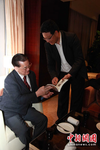 中新網(wǎng)杭州5月2日電 (記者嚴(yán)格)正在杭州參訪的中國國民黨榮譽(yù)主席連戰(zhàn)5月2日晚在其下榻的賓館會(huì)見了中新社浙江分社社長王旻及多次采訪連戰(zhàn)的分社記者,并接受了由中新社浙江分社與浙江省臺(tái)辦共同編撰的《浙臺(tái)口述歷史》一書。