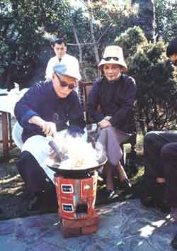 其實,這張照片照的是蔣介石為家人制作他獨門“雞油炒飯”時的畫面,在多數(shù)照片與場合中都相當(dāng)嚴(yán)肅的蔣介石,只有在與家人團(tuán)聚,進(jìn)行他最愛的野炊時,才會露出這樣輕松和藹的一面,所以這張“蔣公炒飯照”可說相當(dāng)經(jīng)典,在不同時刻、地點,蔣介石炒飯都被留影,讓人感受這位褒貶不一歷史人物的另一面。