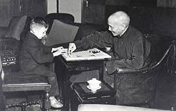 中新網(wǎng)6月3日電 據(jù)臺(tái)灣《旺報(bào)》報(bào)道,1954年,一幅拍攝于蔣介石和二孫孝武在士林官邸下西洋跳棋的照片,獲選國(guó)際攝影展覽人像第一獎(jiǎng)。這不是因?yàn)樗鼇?lái)自臺(tái)灣的“第一家庭”,應(yīng)是其中自然流露的祖孫同樂親情。
