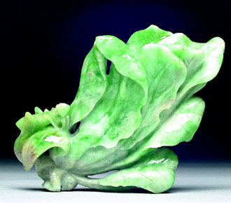 每年為故宮博物院吸引無數(shù)游客上門的“翠玉白菜”,其實并非獨一無二,光是臺北故宮就有三件“翠玉白菜”,但其中“翠玉小白菜”已有六、七年未展出,另一件“翠玉白菜花插”從未曝光過,由于故宮擬將現(xiàn)有依“編年”展覽的方式改為按“材質(zhì)”分類展出,在調(diào)整展覽之際,翠玉白菜將要搬新家。